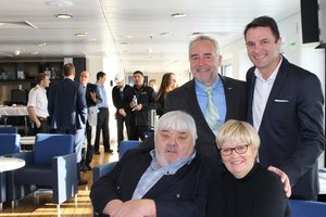 De gauche à droite : Randy Jones – Préfet de la MRC Le Golfe-du-Saint-Laurent, François Bertrand – Président directeur-général par intérim de la Société des traversiers du Québec (STQ), Lorraine Richard – Député de Duplessis et François Bonnardel – Ministre des transports